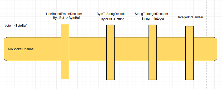 下面这段代码, 先将收到的ByteBuf数据按照换行符分割成一段一段的ByteBuf,然后将ByteBuf转换成String, 再将String转换成int, 最后把int加一后写回。