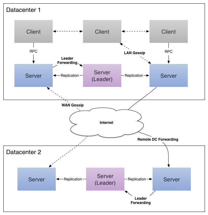 Consul 客户端、服务端还支持夸中心的使用,更加提高了它的高可用性。