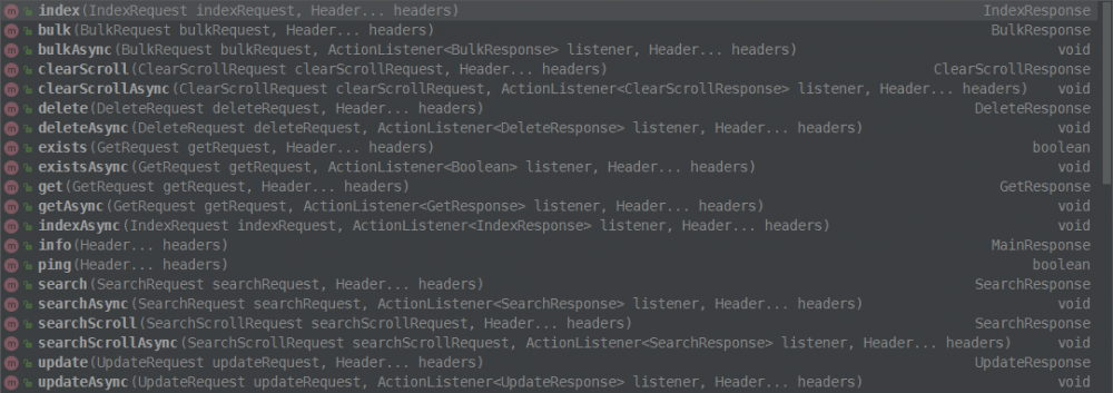 High Level Rest Clent到现在还不是完成版。我试了一下,5.6版本的 RestHighLevelClient 就这么些API