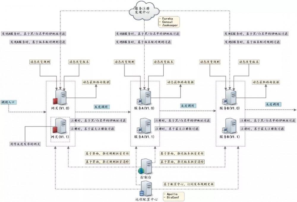 我们可以通过推送A服务调用某个版本的B服务对应关系的配置,达到某种意义上的灰度控制,切换版本的时候,我们只需要再次推送即可