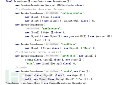 在CVE-2015-4852 中利用的是Commons Collections 库,主流的两大利用链是TransformedMap和Lazymap,其实他们的核心都是类似的。