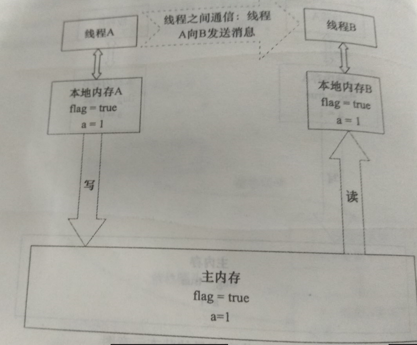 从图来看,如果线程A与线程B之间要通信的话,必须要经历下面2个步骤。