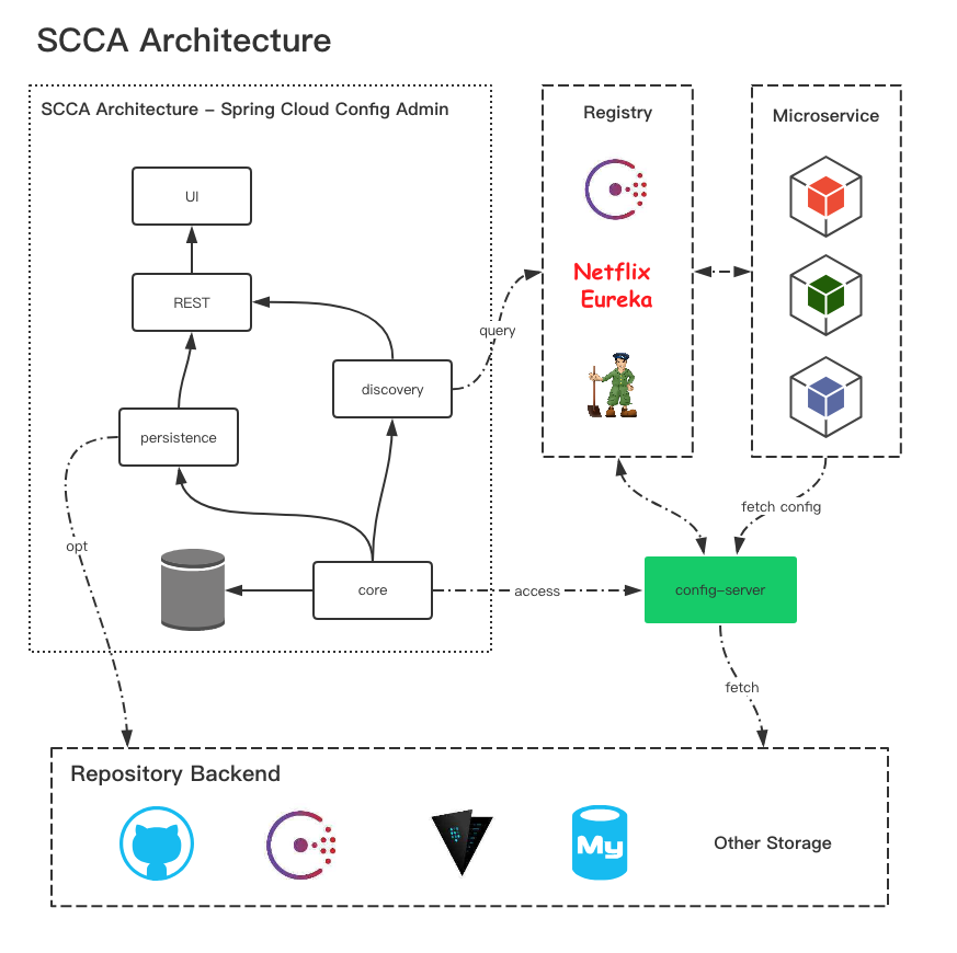 在构建SCCA REST服务端的时候针对对接不同的配置存储有一些不同的配置要求,所以下面按目前支持的存储模式做不同的介绍。
