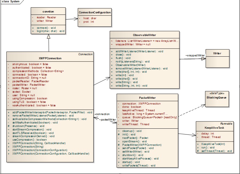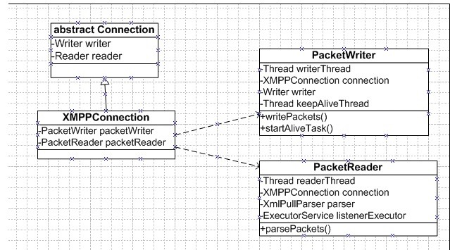 smack的关键有以下这几个类: Connection , XMPPConnection , PakcetWriter , PacketReader. 连接建立过程