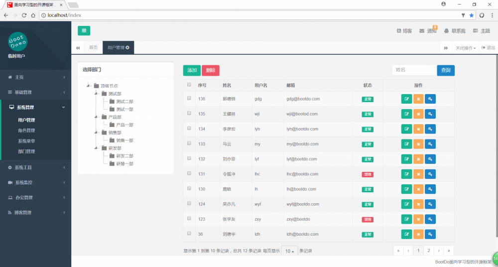 演示地址 http://www.bootdo.com