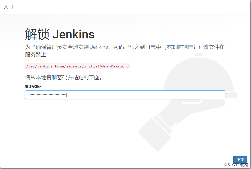登陆需要输入管理员密码,这个密码需至jenkins的系统上面找,在这里,可用到具体运行jenkins的k8s-node上去寻找,例如: