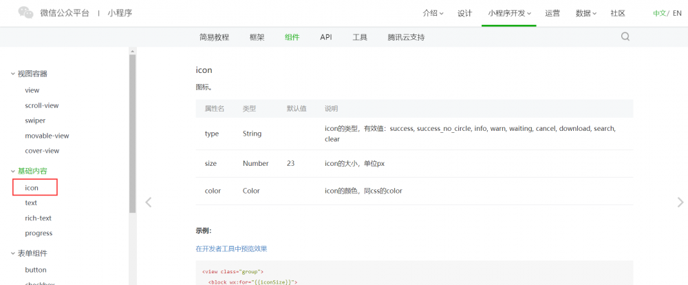 >https://developers.weixin.qq.com/miniprogram/dev/component/icon.html