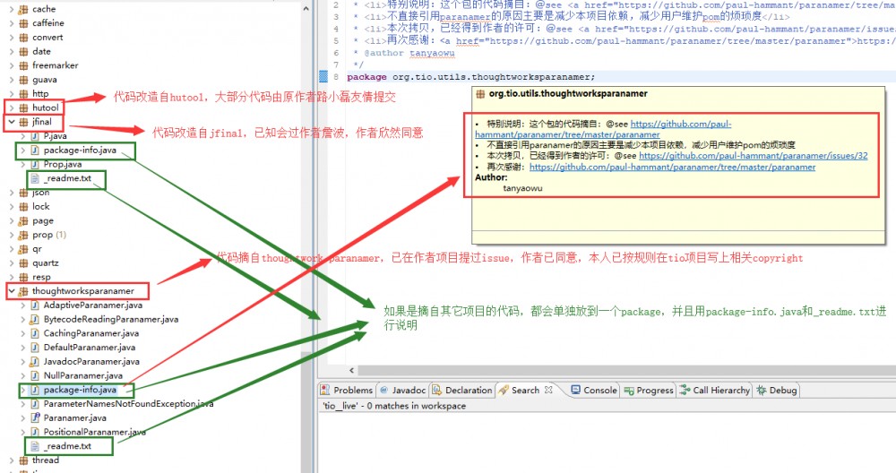 1、减少项目依赖,这个过程,也是有点费时间,特别感谢一下hutool作者@路小磊 的大力支持(自己亲手从tio中kill了hutool),减少依赖的过程中,从另外三个开源项目中拷贝了一些代码,参见下图的详细说明