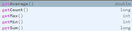 IntSummaryStatistics 包含了计算出来的平均值,总数,总和,最值,可以通过下面这些方法获得相应的数据