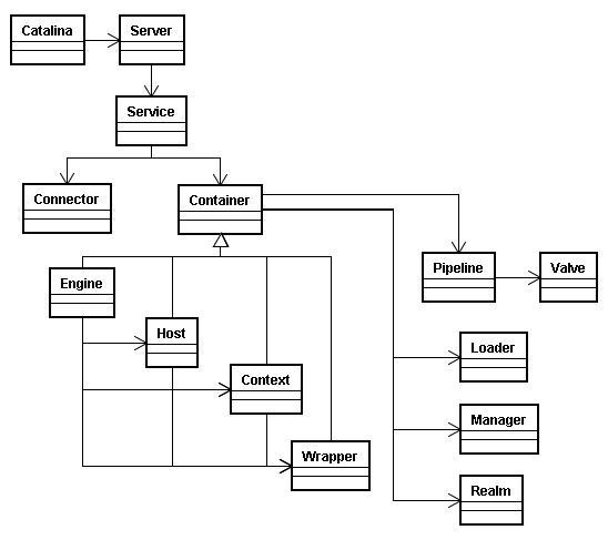 5、Container:可以理解为处理某类型请求的容器,处理的方式一般为把处理请求的处理器包装为Valve对象,并按一定顺序放入类型为Pipeline的管道里。Container有多种子类型:Engine、Host、Context和Wrapper,这几种子类型Container依次包含,处理不同粒度的请求。另外Container里包含一些基础服务,如Loader、Manager和Realm。