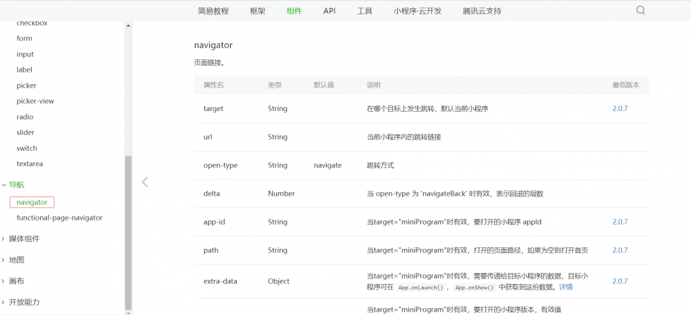 >https://developers.weixin.qq.com/miniprogram/dev/component/navigator.html