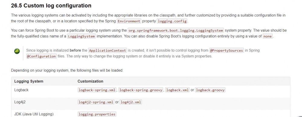 https://docs.spring.io/spring-boot/docs/1.5.15.RELEASE/reference/htmlsingle/#boot-features-logging