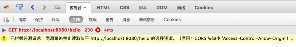 我们在前端通过 JQuery 来请求这个接口的资源的话,会发生错误。