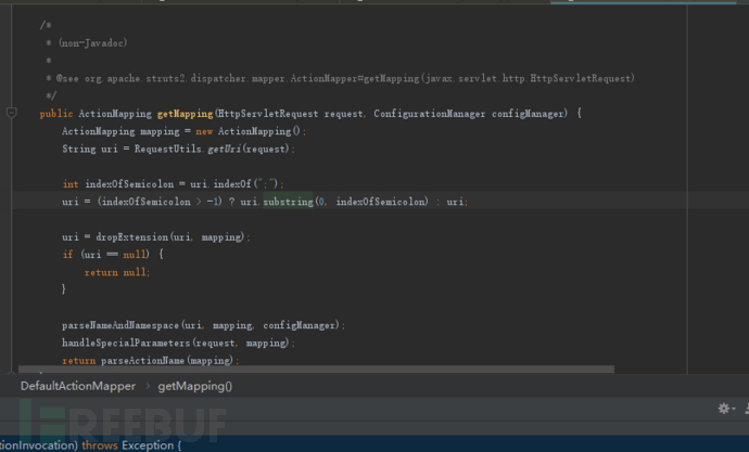 Struts2默认的是调用DefaultActionMapper这一实现类中的getMapping这一方法解析request来判断调用哪个action(报错namespace、name、method),其中ActionMapper是通过parseNameAndParameters方法来获取namespace的。
