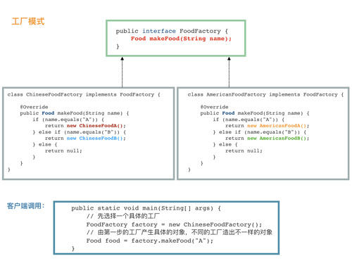 我们强调 职责单一 原则,一个类只提供一种功能,FoodFactory 的功能就是只要负责生产各种 Food。