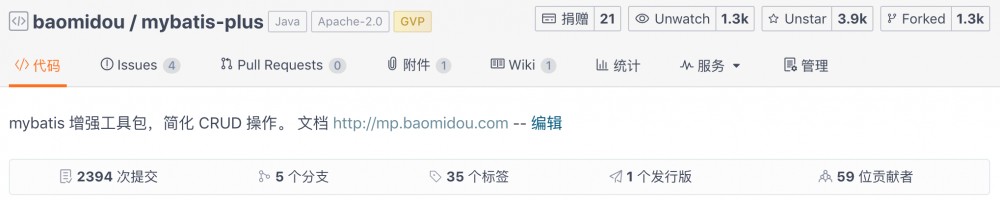Mybatis-Plus 3.0-RELEASE 震撼来袭,历经 1 年余苞米豆组织成员不懈努力 3.0 正式版终于和大家见面,2016 年发布至今荣获 GVP 等荣誉,获得一批粉丝的支持各种 脚手架优秀案例 百花齐放。 watch 1k+ , star 3k+ , fork 1k+ , commit 2k+ , contribution 59