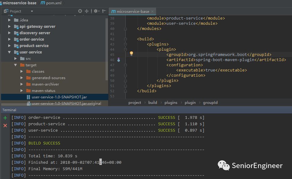 在每个模块的 target 目录下,生成可行执行的jar包。