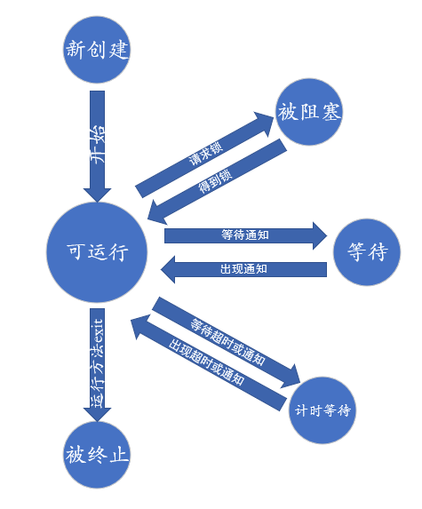 当一个线程试图获取一个内部的对象锁,而该锁被其他线程持有,则该线程进入阻塞状态。当所有其他线程释放该锁,并且线程调度器允许本线程持有它的时候,该线程将变成非阻塞状态