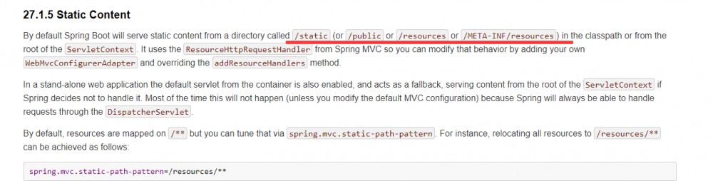 所以一般上我们只需要把静态文件放入前面的四个任一一个即可。默认都放在 static 下,对应路径即为: src/main/resources/static 。