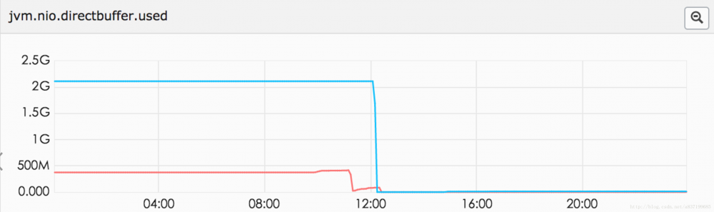 文件描述符、runable线程数 、directbuffer 已经达到了2G(我们-Xmx的值),老年代已经1G多了。但是没有fullGC。youngc次数也不是很多,但是出现问题的机器young gc明显比没出现问题的机器多