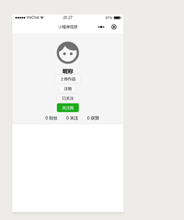 已经完成了登录和注册页面已经开发完毕,当用户注册和登录完毕后,让用户登录到我们的个人信息页面,就是我的页面。源码:https://github.com/limingios/wxProgram.git 中No.15
