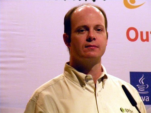 他是谁呢,他就是大名鼎鼎的 Rod Johnson (下图),Rod Johnson 在悉尼大学不仅获得了计算机学位,同时还获得了音乐学位,更令人吃惊的是在回到软件开发领域之前,他还获得了音乐学的博士学位。现在 Rod Johnson 已经离开了 Spring ,成为了一个天使投资人,同时也是多个公司的董事,早已走上人生巅峰。