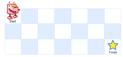 机器人每次只能向下或者向右移动一步。机器人试图达到网格的右下角(在下图中标记为“Finish”)。