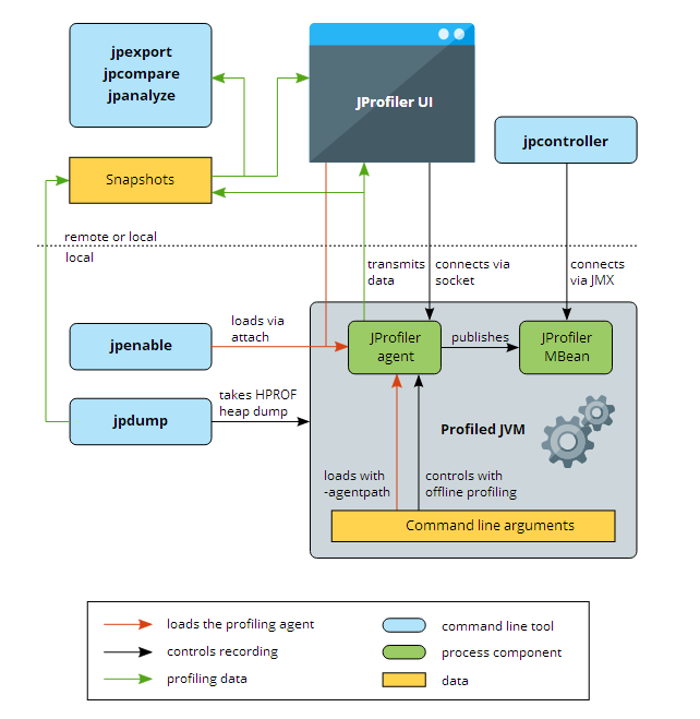 JProfiler将对需要分析的class字节码文件中写入自己的bytecode, 对于正在运行的JVM实例选择此模式将会重新加载字节码文件到JVM的运行时数据区域结构中 .