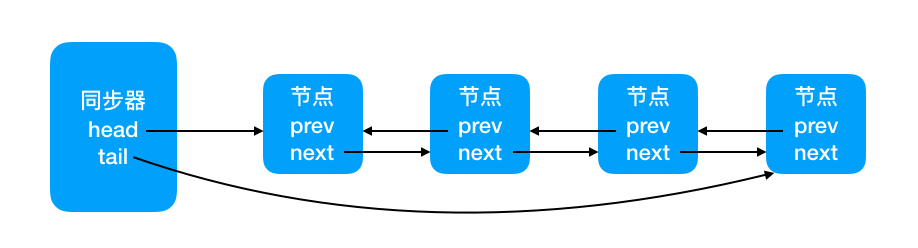 同步器内部通过 FIFO 队列(双向链表)来管理那些获取同步状态失败的线程。当线程获取同步状态失败后,会将当前线程以及一些状态信息构造成一个节点(Node)添加到队列的尾部,同时阻塞该线程;当同步状态被释放后,会把后继节点的线程唤醒并尝试获取同步状态。
