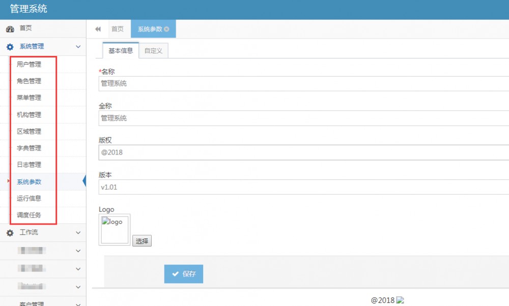 1、系统管理功能完善。系统标题,logo可配置。
