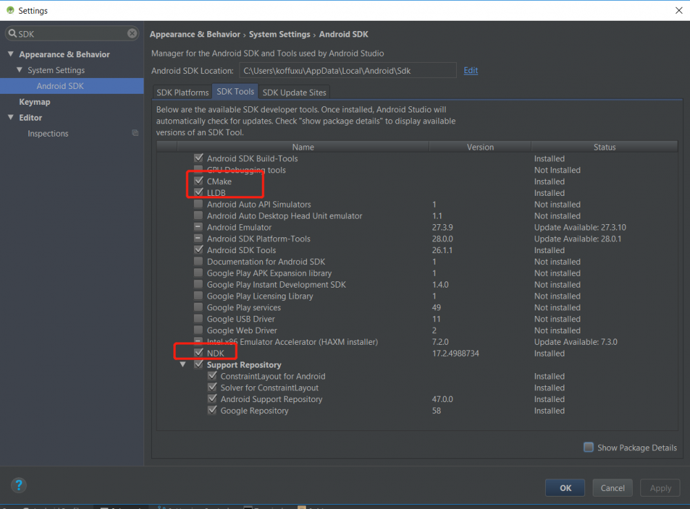 源码Android SDK快速迭代,JNI在AndroidStudio不同版本上使用有较大的区别,我这贴出我使用AndroidStudio相关版本的情况