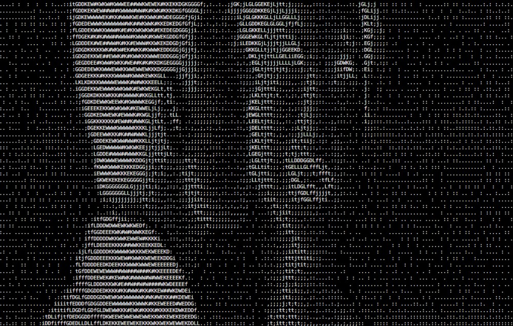 每个项目启动时候,会出现类型如下的一个字符界面,请不要慌,这不是bug。这只是我跟二晶同学的一张小合影,想送给她一个小惊喜。其实就是把图片弄成了字符形式,大家如果想知道怎么弄这个效果可以私信我。