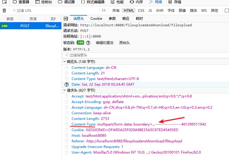 在 TCP/IP 中,最早出现的文件上传机制是 FTP,这是将文件由客户端发送到服务器的标准机制。而在 Web 开发中,使用应用层协议 HTTP,通过在请求头中设置传输的内容类型 Content-Type 为 multipart/form-data; boundary=流分隔符值 来上传文件,这个流分隔符用来区分一个文件上传的开始和结束,下面的是我在火狐浏览器中截取的多个文件上传时的消息头和参数。