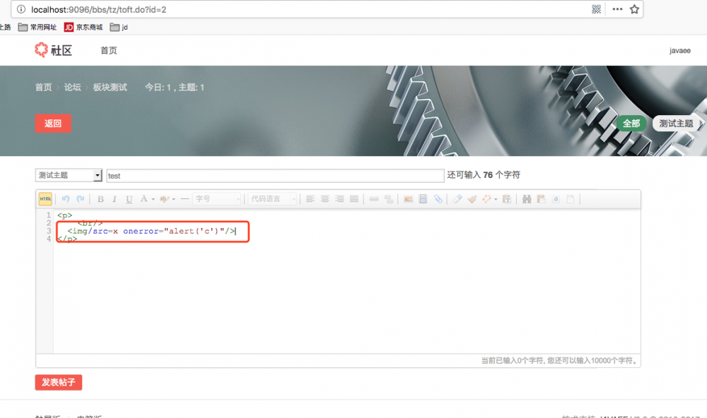 这个是黑盒测试出来的,因为用了Ueditor的富文本编辑器。然后直接构造了payload,导致帖子正文xss