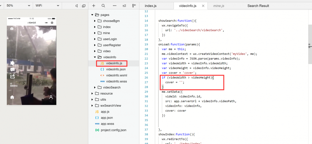 在手机拍摄视频的时候,存在2个情况,手机横这和手机竖着。如果是横着的情况下,我们竖着拿手机观看模式,包括抖音,快手,他们的解决方案都是上下出现黑色变宽,对视频进行等比例压缩。老铁我也参考这个来完成。另外如果用户为登录的情况下,想进入我的需要登录才可以,这个也需要页面通过缓存中获取用户信息来进行控制。源码:https://github.com/limingios/wxProgram.git 中No.15