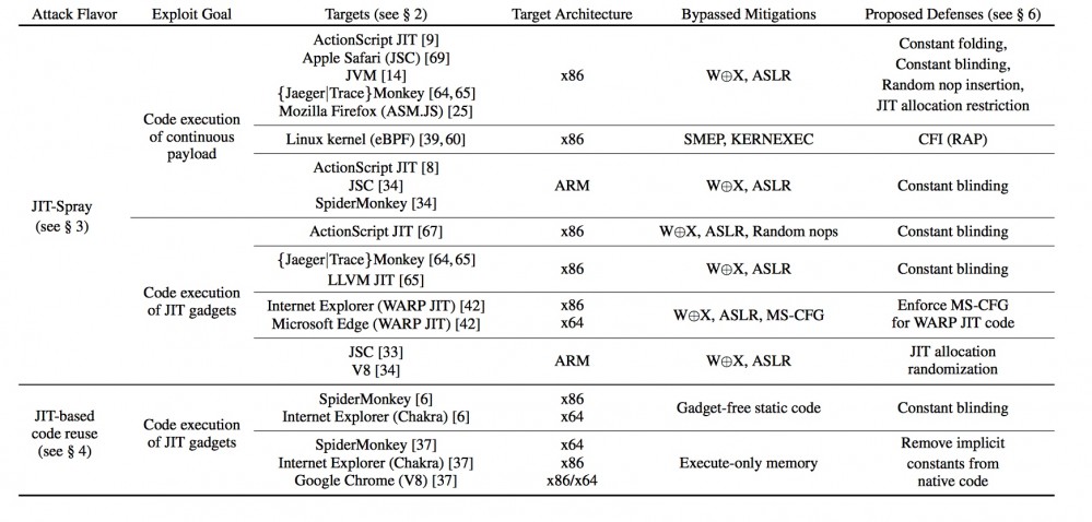 如下图所示是作者以图表形式对JIT相关攻击防护措施的总结。