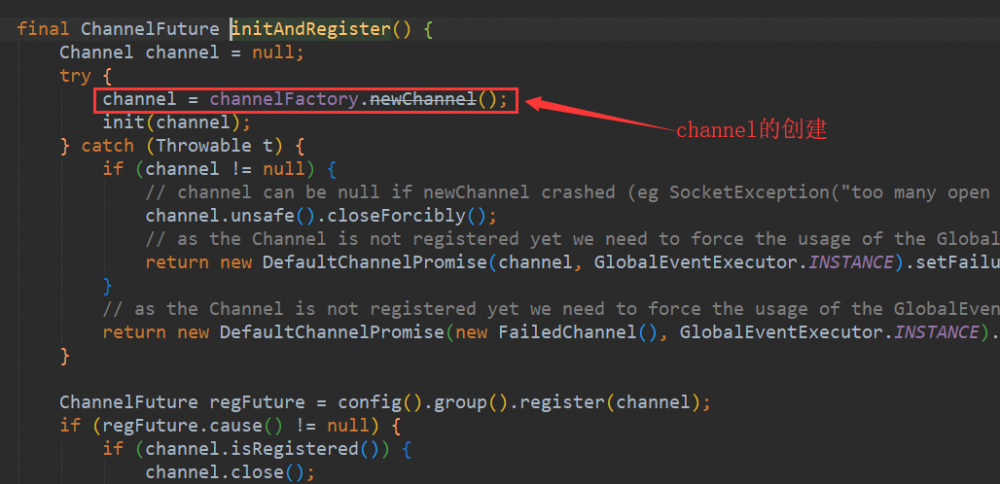 前面已经介绍了 Channel的创建和初始化过程,是在 initAndRegister 方法中进行的,这个方法里还会将初始化好的 channel注册到 EventLoop 线程中去