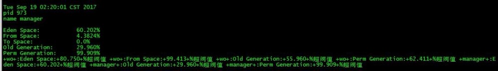 jvm=$jvm+${name1}+":From Space:"+${from}+"%超阀值 "