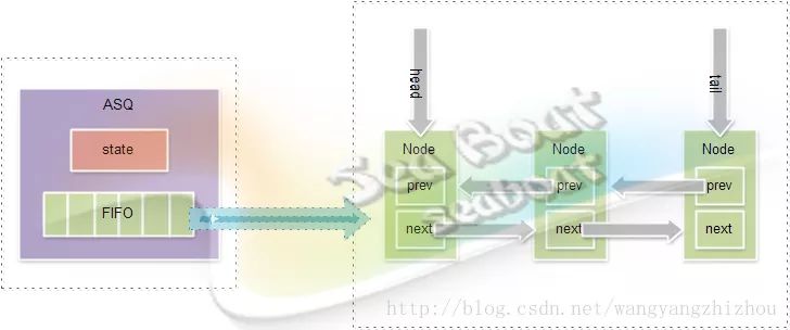 AQS将线程封装到一个Node里面,并维护一个CHL Node FIFO队列,它是一个非阻塞的FIFO队列,也就是说在并发条件下往此队列做插入或移除操作不会阻塞,是通过自旋锁和CAS保证节点插入和移除的原子性,实现无锁快速插入。