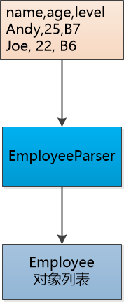 这样简单的任务对张大胖来说是小菜一碟,他写了一个EmployeeParser,专门解析CSV文件,形成Employee对象,半个小时不到就收工了,赶紧下班!