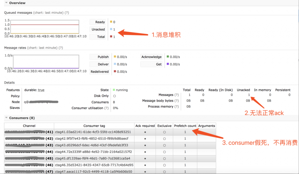 consumer 数量正常,mq 控制面板的 prefetch 参数始终是1, 消息无法正常 ack, 队列处于假死状态, 系统报异常 org.springframework.amqp.rabbit.listener.exception.ListenerExecutionFailedException