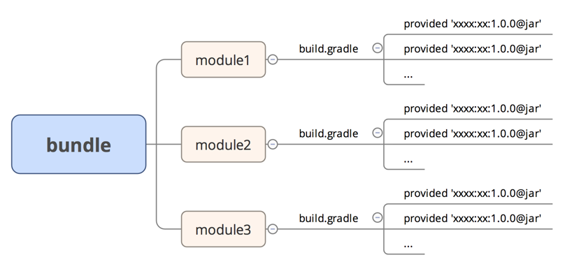 对于某个 Bundle,我们可以通过分析 Bundle 中的 module,然后解析 build.gradle 文件,获取 Bundle 之间的依赖。