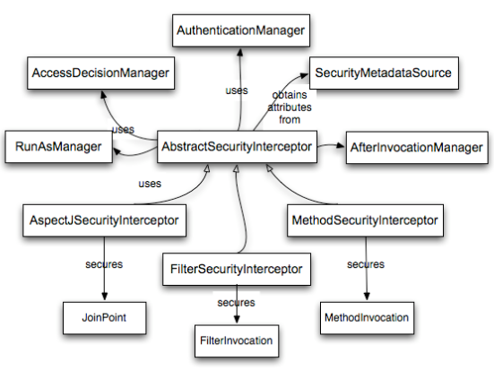你可以选择使用Aspectj或Spring AOP对方法调用进行鉴权,或者选择使用Filter对Web请求进行鉴权。当然,你也可以选择使用这三种方式的任意组合进行鉴权。通常的做法是使用Filter对Web请求进行一个比较粗略的鉴权,辅以使用Spring AOP对Service层的方法进行较细粒度的鉴权。