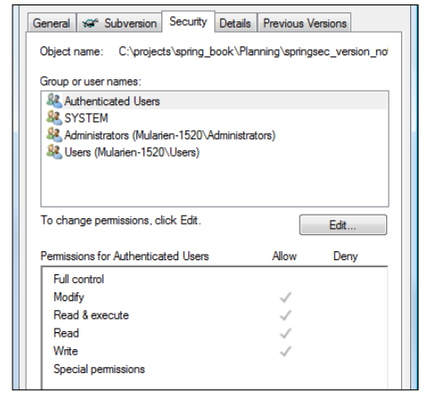 你可以看见各种的组或用户以及权限,从而能够以可视化和很直观的方式输入ACL。