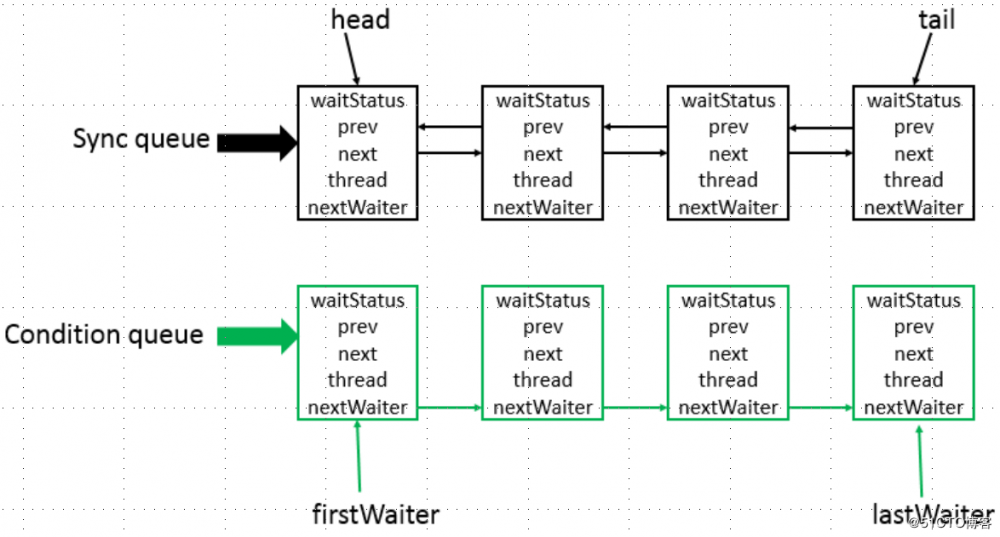 AbstractQueuedSynchronizer底层数据结构是一个双向链表,属于队列的一种实现: