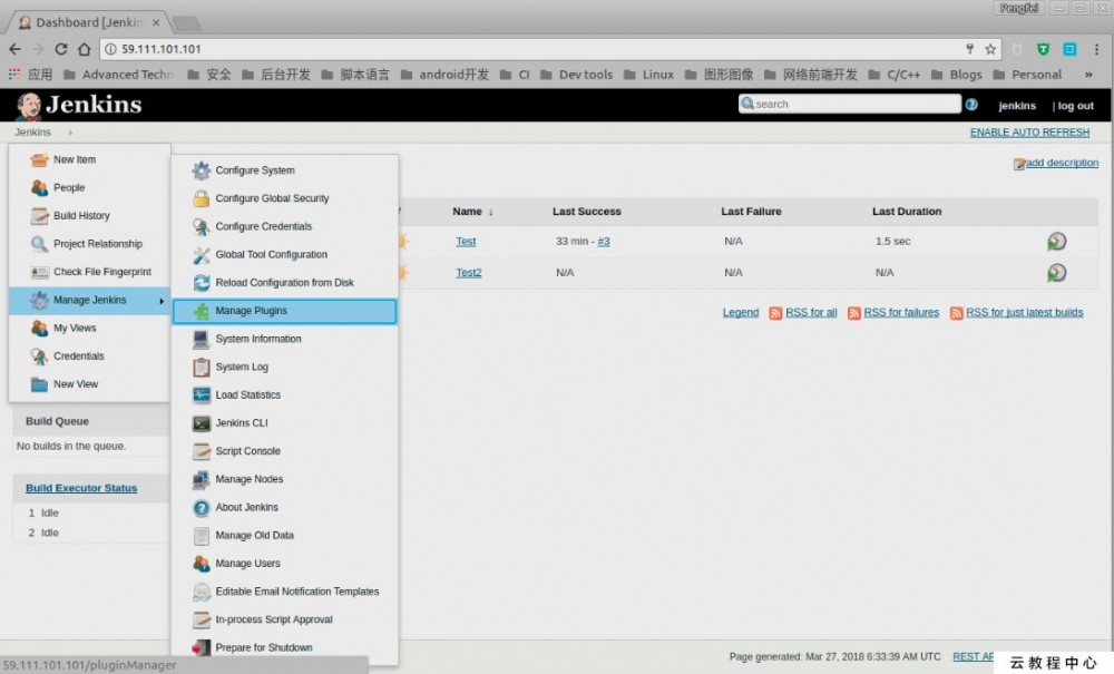 要实现在向 GitLab push 代码时,自动 trigger Jenkins 工程执行构建动作,需要在 GitLab 和 Jenkins 的多个地方做配置:(1)、在 Jenkins 中安装插件;(2)、配置 GitLab 用户;(3)、配置 Jenkins 服务器;(4)、配置 Jenkins 工程;(5)、配置 GitLab 工程。 在 Jenkins 中安装插件