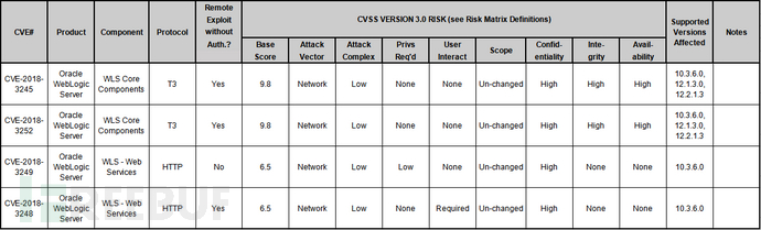 在Oracle公司本次修复的漏洞中,CVE-2018-3245 和 CVE-2018-3252均为高危反序列化漏洞,影响多个 WebLogic 大版本,CVSS评分为9.8分,一定条件下,可以造成远程代码执行。本文将对这两个漏洞进行简单描述。