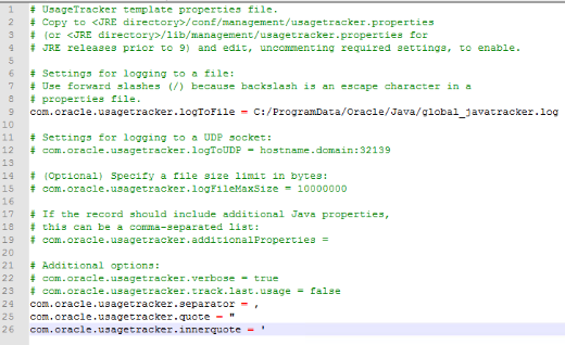 oracle.usagetracker.logToFile oracle.usagetracker.additionalProperties