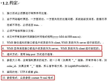 以秀品和EMS(仓储物流商)的WMS(仓库管理系统)交互为例,EMS会提供一份标准对外接口文档给秀品。不同业务接口的调用形式和接口参数基本是一致的,仅通过参数值传递与业务相关的数据。约定如下图所示: