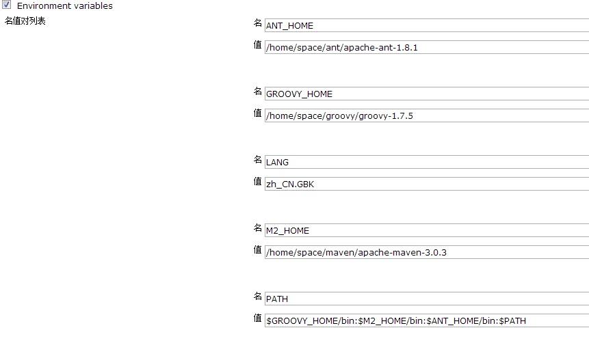Node Properties可设置环境变量,如果不设置就会使用jenkins主机上全局定义的环境变量,如下图所示: